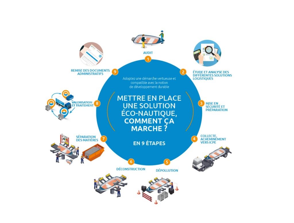 Depuis l’arrêté du 21 février 2019, la France est pionnière avec la création d’une filière nationale agréée pour la déconstruction des bateaux de plaisance et de sport, portée par l’Association pour la Plaisance Éco-Responsable (APER).